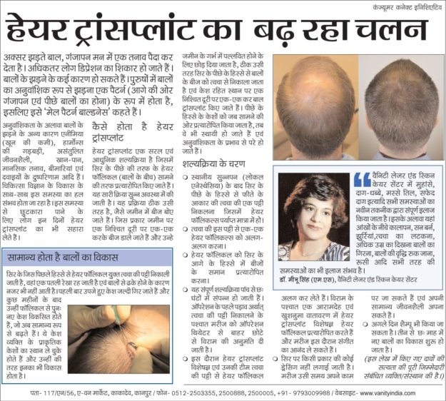 अब कानपुर में ही कराएं हेयर ट्रांसप्लांटBeauty, Face & body, Hair, In the Media, Information, Skin Care, Vanity KanpurBy vanityadminMarch 4, 2019
